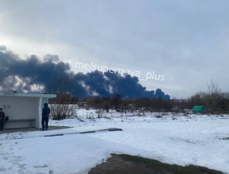 На фото видно, що на нафтоперекачувальній станції Горький у Нижньогородській області Росії горять щонайменше два резервуари. Інші резервуари поки що лишаються неушкодженими.